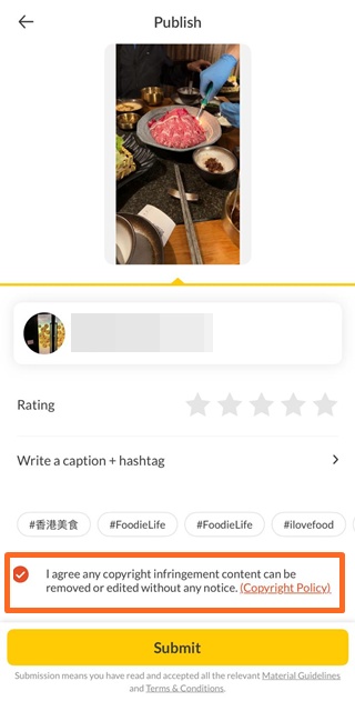 The Company uses its best effort to develop an online community where food-lovers congregate to exchange dining and food and beverage (F&B) information. In order to keep the Channels useful to users and not overrun with commercial noise, hate speech or useless information, you, also be subject to the [Restaurant Review & Comment Guidelines] when submitting restaurant review or comment, should not post any Material which is/may be or contains/may contain:-