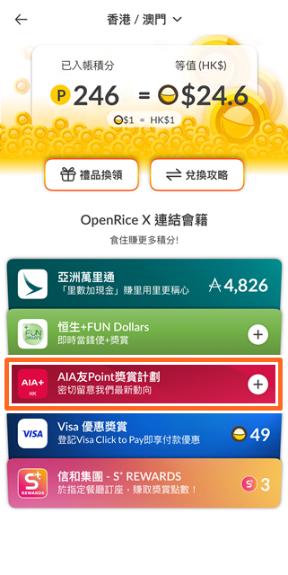 • 按AIA友Point獎賞計劃的「+」