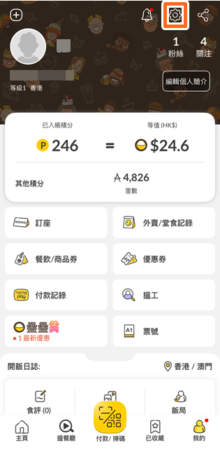 • 於主頁上方按「我的積分」