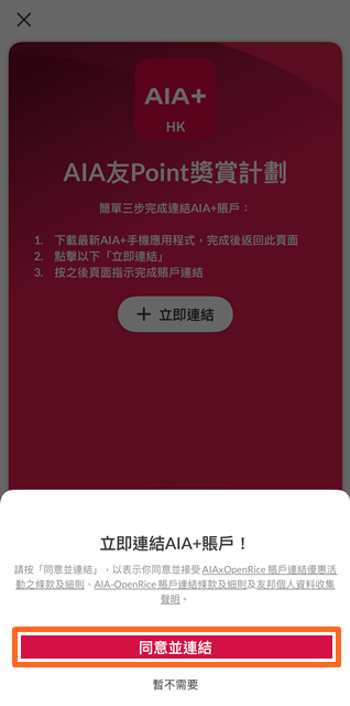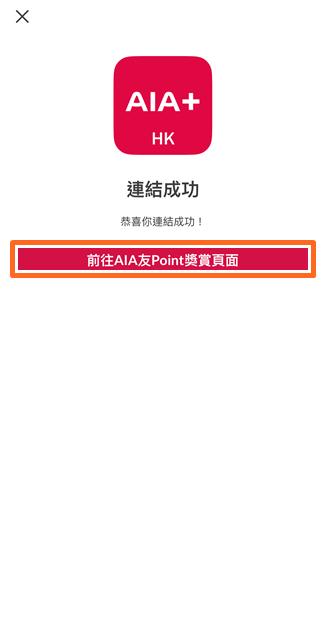 • 帳戶成功連結,按 「前往AIA友Point獎賞頁面」