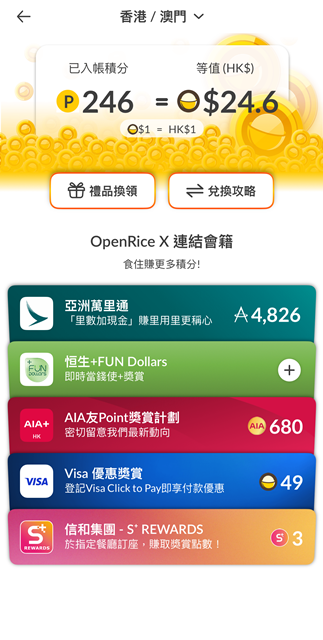*請更新OpenRice應用程式到5.13.0或以上,以支援於OpenRice應用程式連結恒生信用卡至OpenRice帳戶及查詢於OpenRice扣減/賺取額外恒生+FUN Dollars之紀錄。服務只適用於操作系統為iOS 版本9.0 或更新版本的Apple流動裝置及操作系統為Android版本 4.4或更新版本的Android流動裝置。