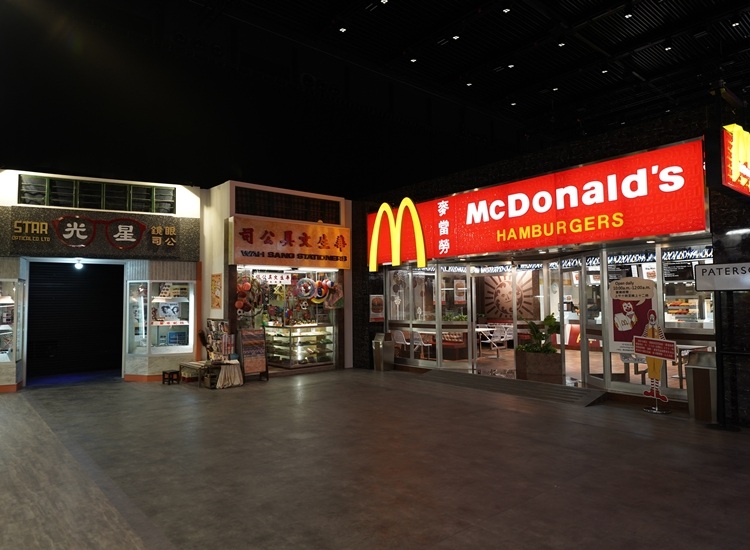 主題展區一:「第一間香港麥當勞」、「1975年百德新街」及「霓虹燈牌隧道」