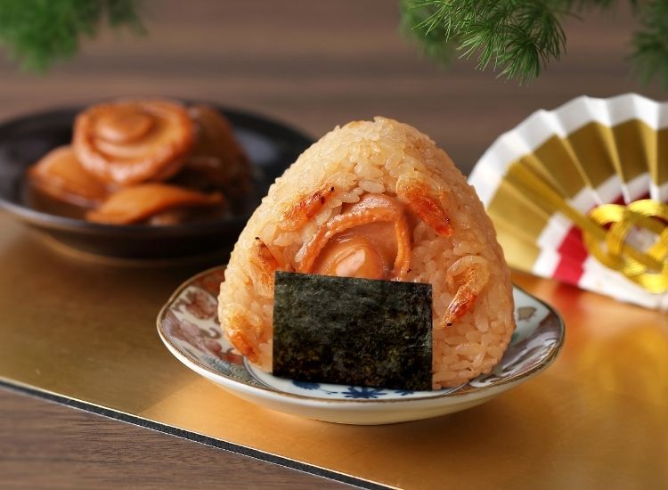 圓潤飽滿嘅鮑魚外形猶如金元寶,象徵財源廣進、富貴滿載。鮑魚以高湯紅燒鮑魚汁,配合60℃慢煮方式烹調,嫩滑爽口。日本米飯仲加入鮑魚汁、鰹魚汁同櫻花蝦拌製,入口鹹香鮮味。