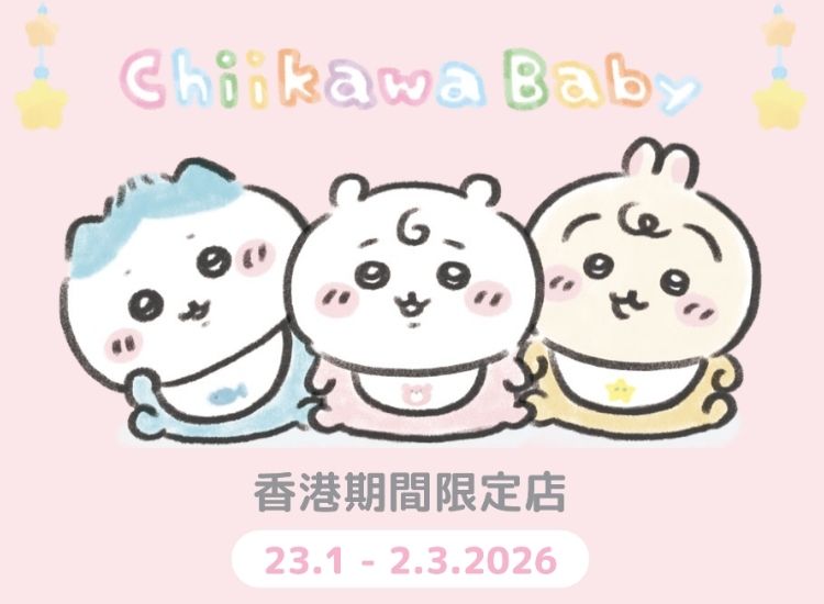 Chiikawa Baby香港快閃店店 第2彈新品與日本同步開售! Chiikawa Fans嘅幸福天地呀!佔地近2,000呎、由本地生活品牌NIKO-NIKO Lifestyle Store獨家呈獻「Chiikawa Baby 香港期間限定店」,將於2026年1月23日至3月2日喺MOKO新世紀廣場登場! 作為Chiikawa Baby期間限定店全球巡迴嘅其中一站,香港店會重現日本官方巡迴快閃店場景,帶大家一秒置身於Chiikawa Baby嘅可愛空間~除咗必影打卡位外,現場更有多款日本直送官方授權商品,最驚喜係「Chiikawa Baby」第2彈新品會將與日本同步發售呀!即刻睇定全員變身可愛寶寶造型公仔之後,邊款生活用品啱你心水啦~ Chiikawa